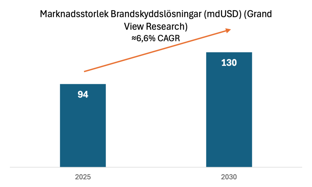 Tillväxtantagandena stöds av flera strukturella faktorer. Bolaget fortsätter att bredda sin kundbas både geografiskt och segmentmässigt, samtidigt som marknadstrender såsom ökade säkerhetsregleringar och högre krav från försäkringsbolag driver investeringar i industriella brandskyddssystem. Därtill har det makroekonomiska klimatet förbättrats sedan inflationsåren 2022-2023, där lägre räntor och stabilare kostnadsnivåer väntas bidra till att industribolag åter ökar sina investeringsnivåer.
