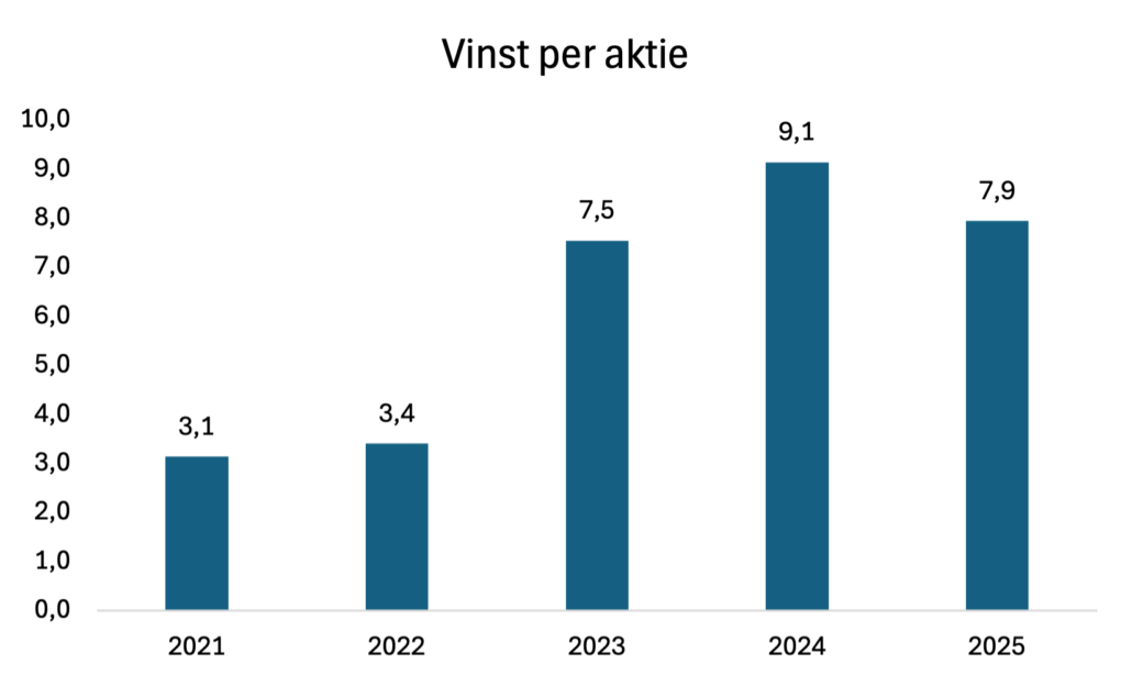 Prognosen stöds även delvis av den senaste kvartalsutvecklingen. Under andra halvåret 2025 förbättrades lönsamheten tydligt, där rörelsemarginalen uppgick till 17,6 % i tredje kvartalet och 15,3 % i fjärde kvartalet. Detta indikerar att marginalen i större utsträckning återgått till historiska nivåer efter en svagare period tidigare under året.