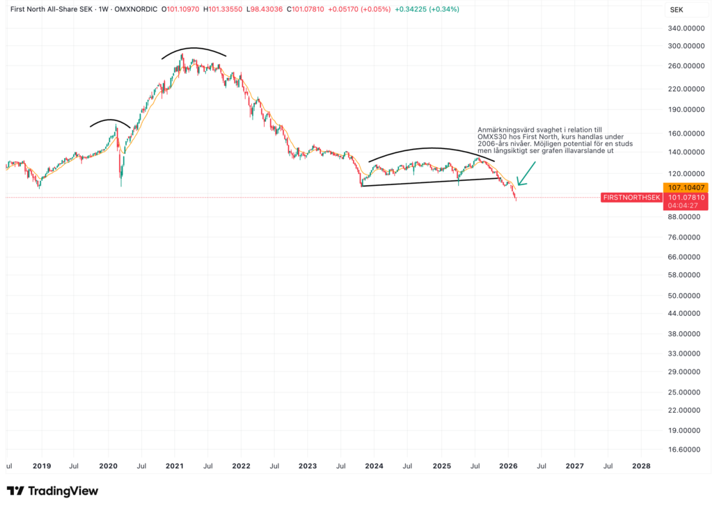 Denna trend understöds dessutom av tydligare fundamentala faktorer än för guld. Omkring 50 procent av den globala efterfrågan utgörs av industriell användning, samtidigt som marknaden under flera år präglats av ett strukturellt underskott i förhållande till den årliga produktionen. Därtill är ledtiderna för att etablera nya gruvor och skala upp produktionen långa, vilket talar för att utbudssidan förblir begränsad. Sammantaget finns därmed förutsättningar för att uppåttrenden ska fortsätta, förutsatt att dollarn inte inleder en snabb och ihållande uppgång.