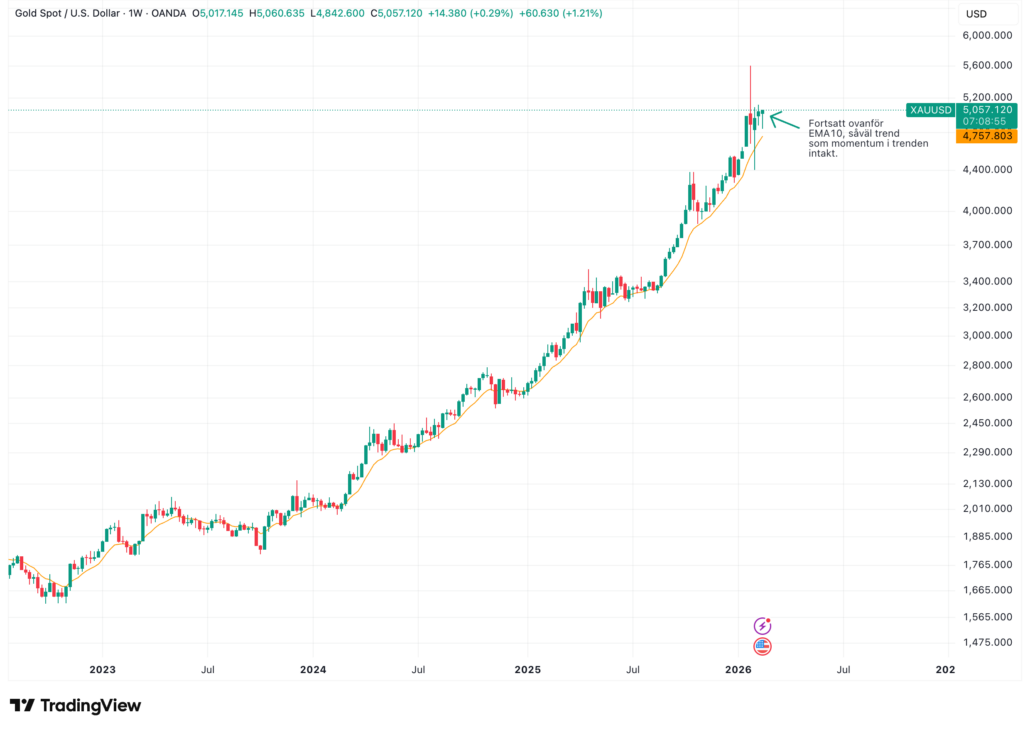 Silver handlas, som bekant, ofta som “guld på steroider”, vilket också har bekräftats av de senaste veckornas utveckling. Priset föll under en historiskt snabb period, för att därefter snabbt återetablera sig över EMA10.
