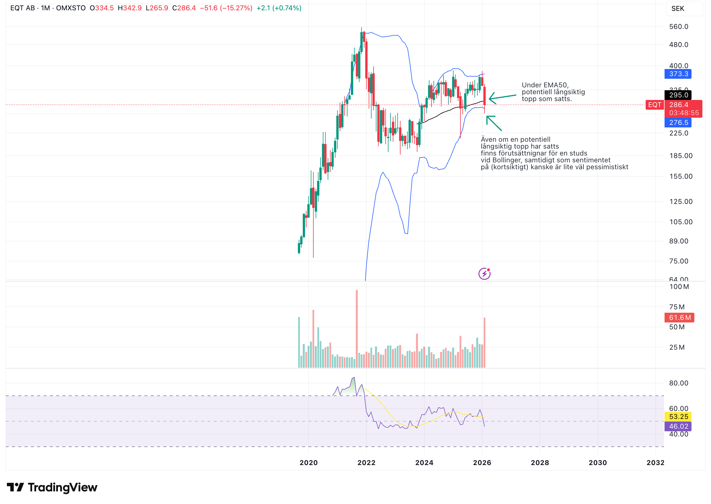 Sammanfattningsvis präglas marknaden av hög volatilitet och tydliga sektorrotationer. Mjukvaru- och SaaS-bolag har pressats efter oro kopplad till AI-utvecklingen, vilket även har spillt över på PE- och private credit-aktier, inte minst mot bakgrund av sektorns SaaS-exponering och händelser inom private credit. Samtidigt kvarstår strukturella utmaningar för PE i form av högre räntor, svagare exit-marknad och pressade avkastningsantaganden.